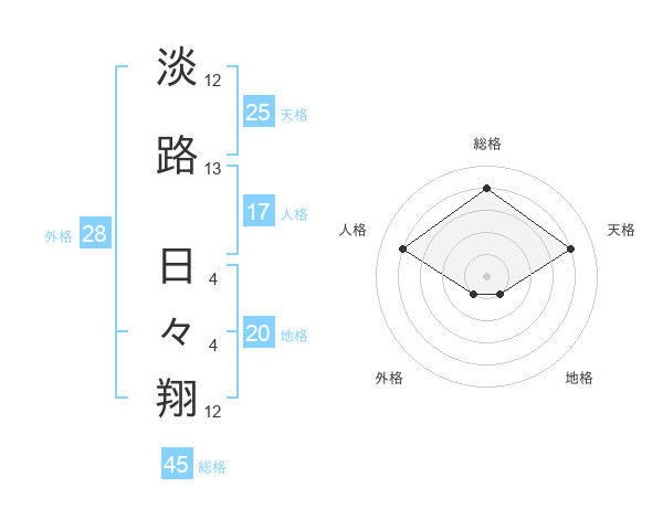 淡路 日々翔さんを姓名の画数から五運を鑑定