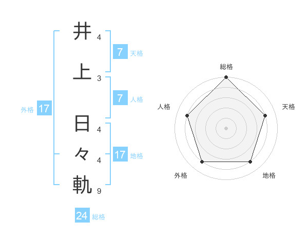 井上 日々軌さんを姓名の画数から五運を鑑定