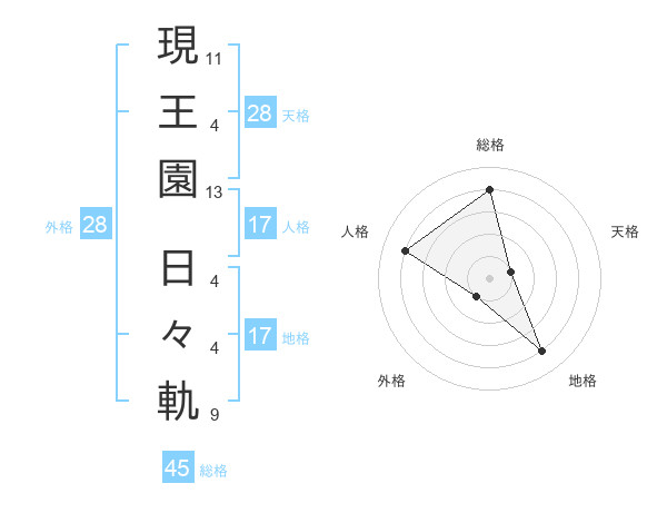 現王園 日々軌さんの総格は45画の4点!