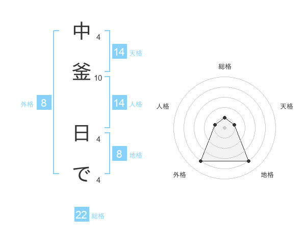 中釜 日でさんの総格は22画の1点!