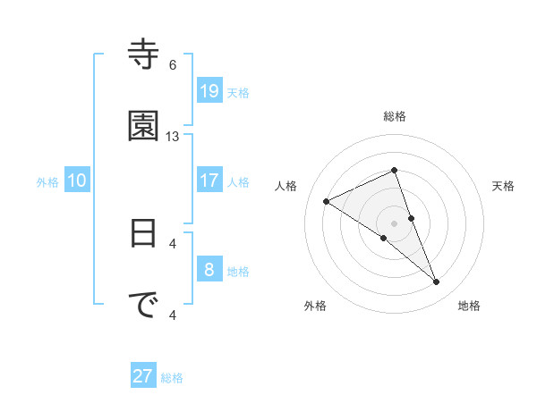 寺園 日でさんの総格は27画の3点!