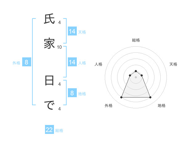 氏家 日でさんの外格は8画の4点!