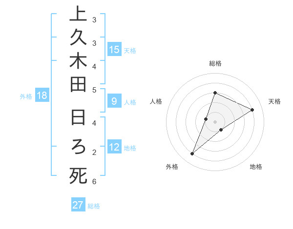 上久木田 日ろ死さんを姓名の画数から五運を鑑定