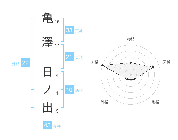 亀澤 日ノ出さんを姓名の画数から五運を鑑定