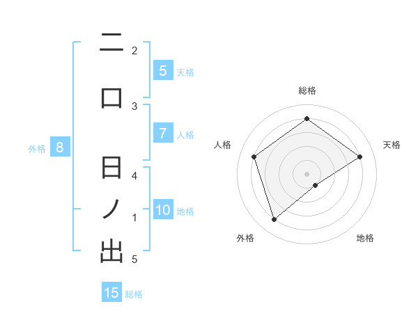 二口 日ノ出さんを姓名の画数から五運を鑑定