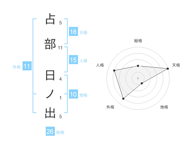 占部 日ノ出さんを姓名の画数から五運を鑑定