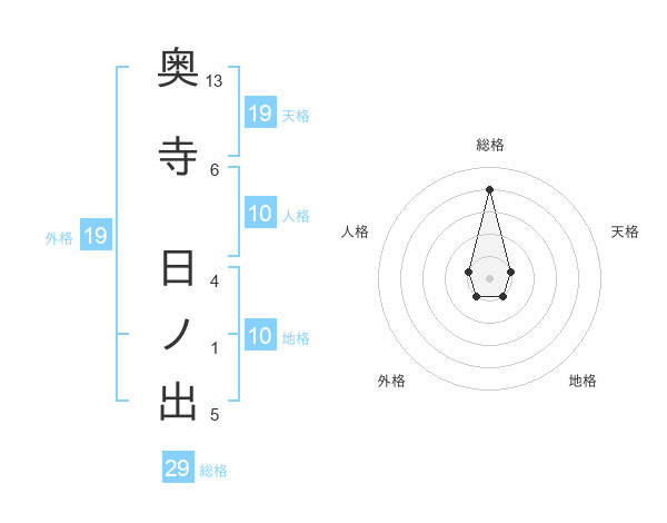 奥寺 日ノ出さんを姓名の画数から五運を鑑定