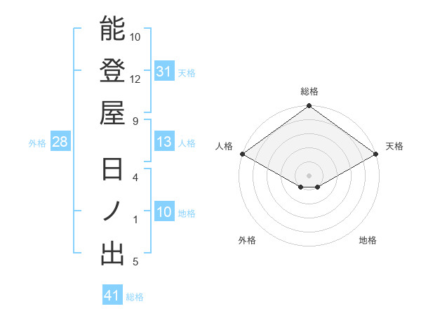 能登屋 日ノ出さんを姓名の画数から五運を鑑定