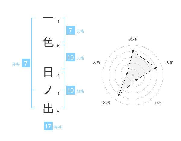 一色 日ノ出さんを姓名の画数から五運を鑑定