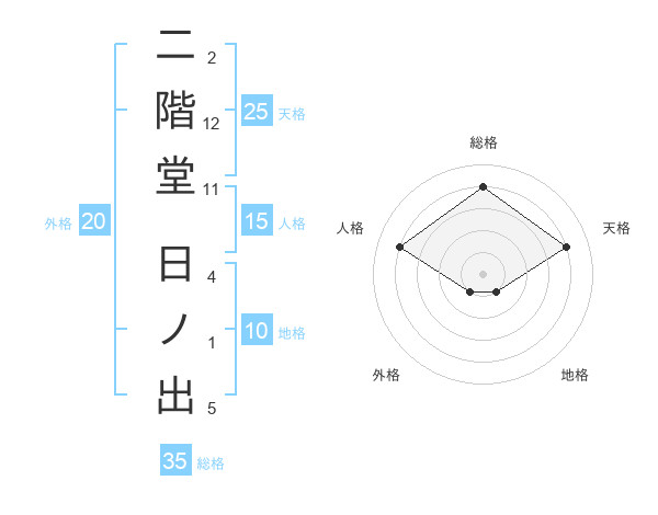 二階堂 日ノ出さんを姓名の画数から五運を鑑定