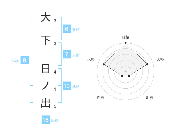 大下 日ノ出さんを姓名の画数から五運を鑑定