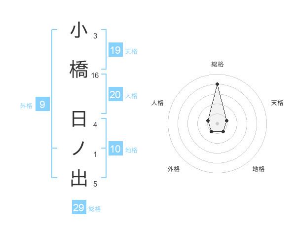 小橋 日ノ出さんの総格は29画の4点!