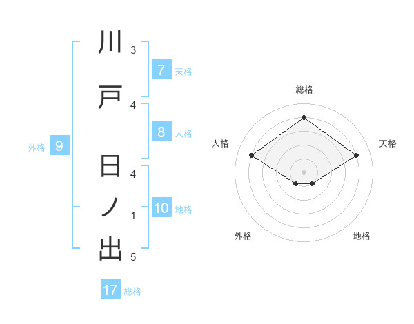 川戸 日ノ出さんを姓名の画数から五運を鑑定