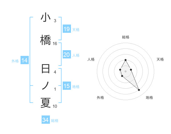 小橋 日ノ夏さんを姓名の画数から五運を鑑定