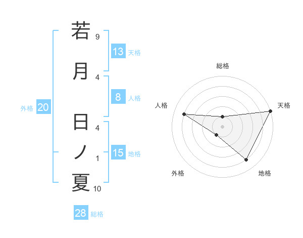 若月 日ノ夏さんを姓名の画数から五運を鑑定