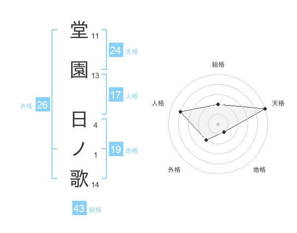 堂園 日ノ歌さんを姓名の画数から五運を鑑定