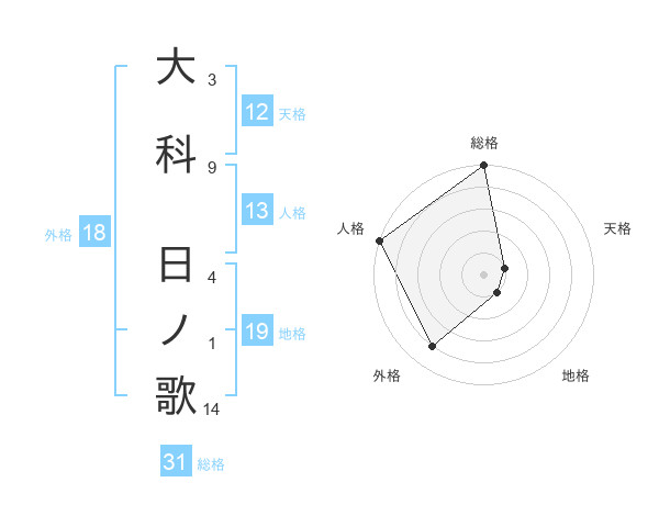 大科 日ノ歌さんを姓名の画数から五運を鑑定