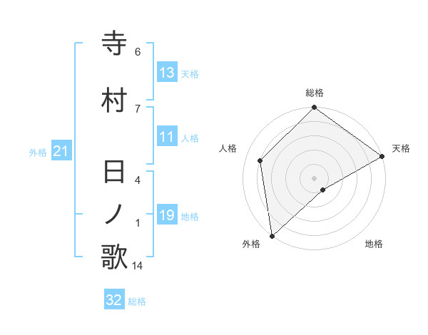 寺村 日ノ歌さんの外格は21画の5点!