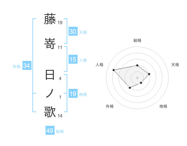 藤嵜 日ノ歌さんの総格は49画の2点!