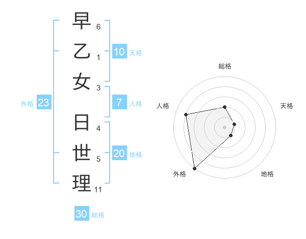 早乙女 日世理さんの総格は30画の2点