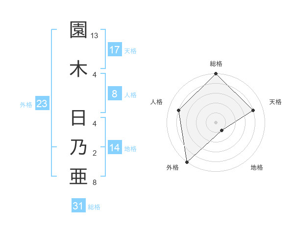 園木 日乃亜さんを姓名の画数から五運を鑑定