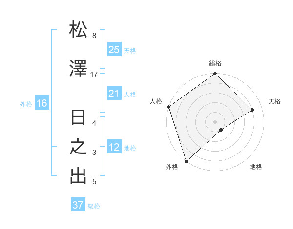 松澤 日之出さんの総格は37画の5点!