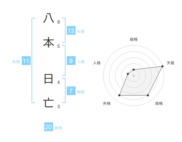 八本 日亡さんの総格は20画の1点!