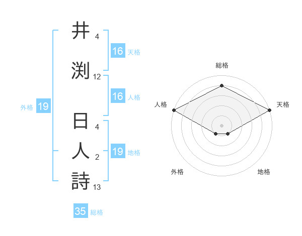 井渕 日人詩さんを姓名の画数から五運を鑑定