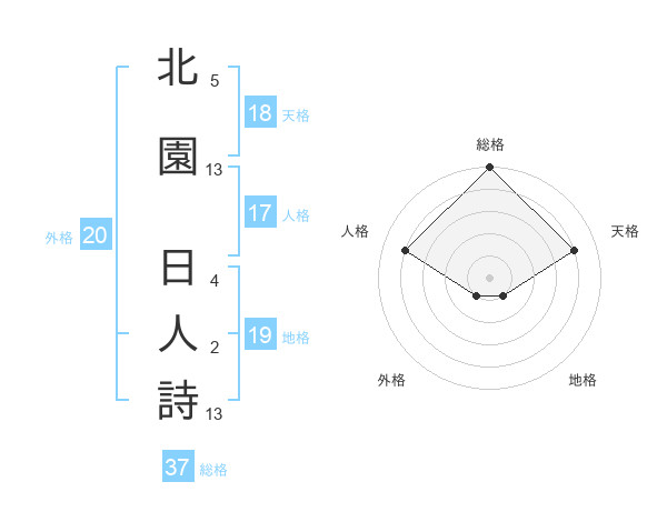 北園 日人詩さんを姓名の画数から五運を鑑定