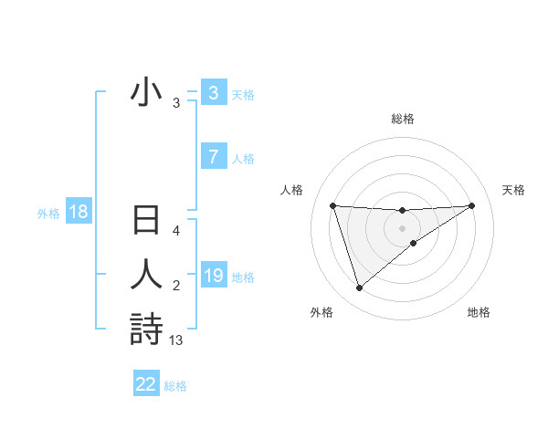 小 日人詩さんの総格は22画の1点!