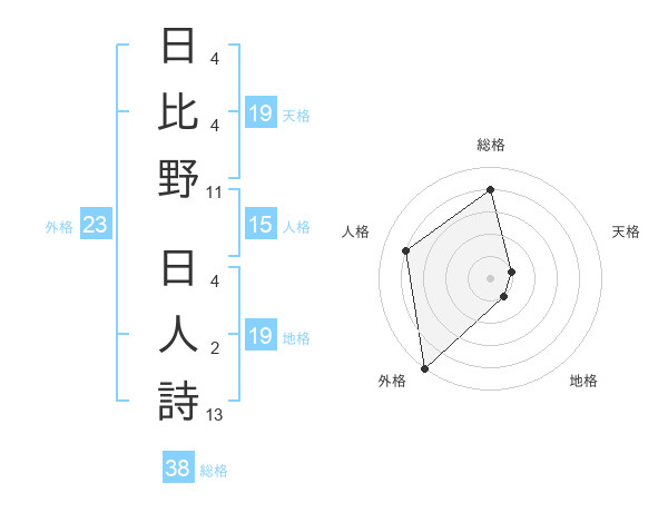 日比野 日人詩さんを姓名の画数から五運を鑑定