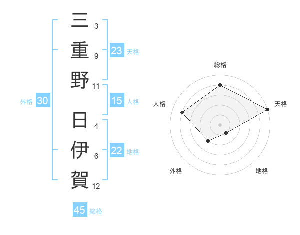三重野 日伊賀さんを姓名の画数から五運を鑑定