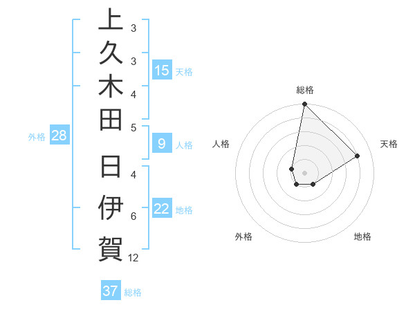 上久木田 日伊賀さんの総格は37画の5点!