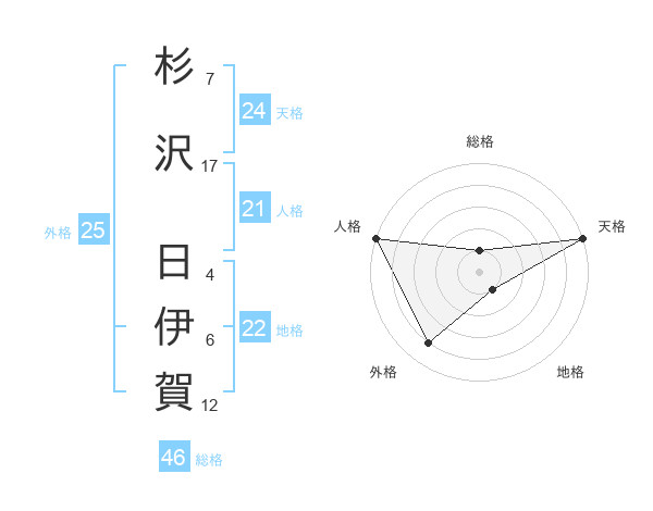 杉沢 日伊賀さんを姓名の画数から五運を鑑定
