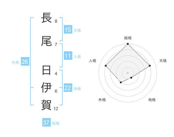長尾 日伊賀さんを姓名の画数から五運を鑑定
