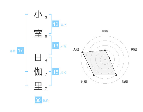 小室 日伽里さんを姓名の画数から五運を鑑定