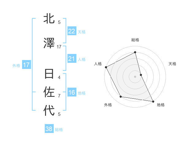 北澤 日佐代さんを姓名の画数から五運を鑑定