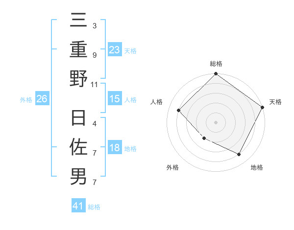 三重野 日佐男さんの総格は41画の5点!