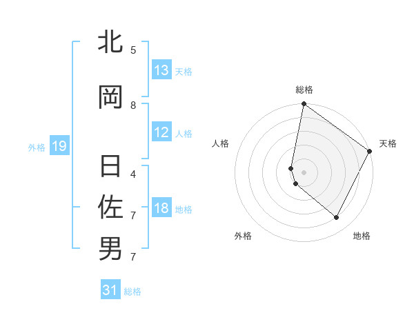 北岡 日佐男さんの総格は31画の5点!