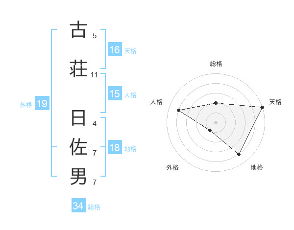 古荘 日佐男さんを姓名の画数から五運を鑑定