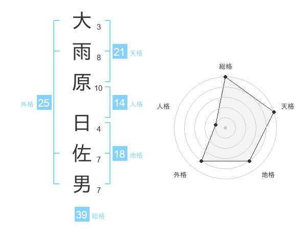 大雨原 日佐男さんを姓名の画数から五運を鑑定