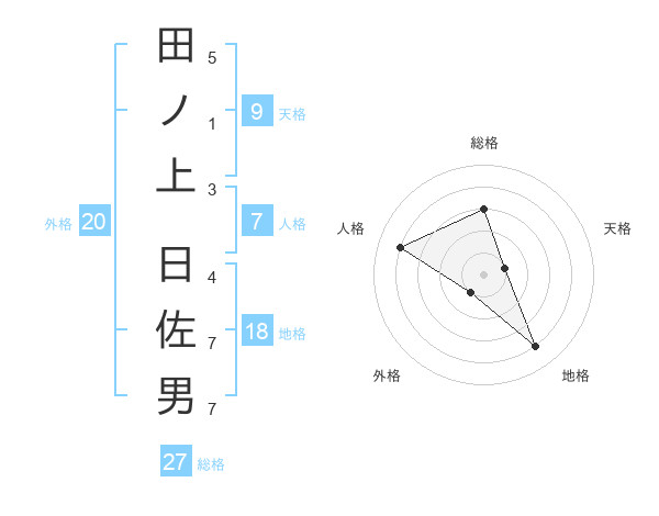 田ノ上 日佐男さんを姓名の画数から五運を鑑定