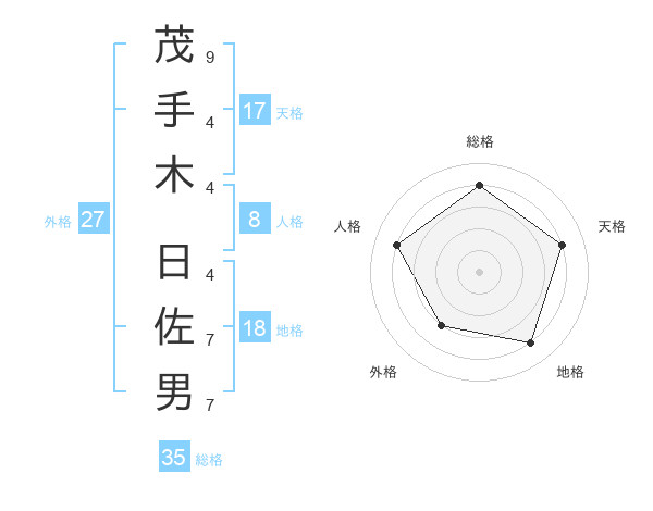 茂手木 日佐男さんを姓名の画数から五運を鑑定