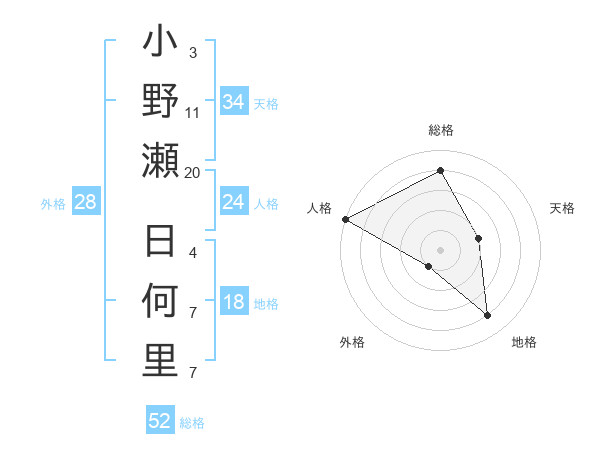小野瀬 日何里さんを姓名の画数から五運を鑑定