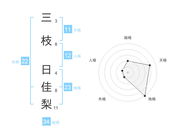 三枝 日佳梨さんを姓名の画数から五運を鑑定
