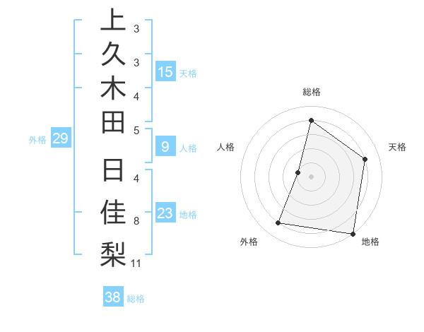 上久木田 日佳梨さんを姓名の画数から五運を鑑定