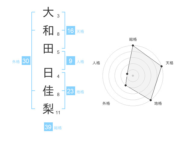 大和田 日佳梨さんを姓名の画数から五運を鑑定
