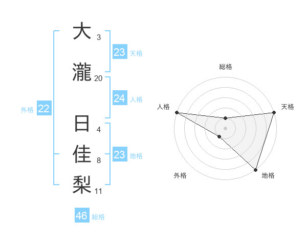 大瀧 日佳梨さんの地格は23画の5点!