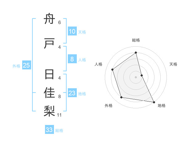 舟戸 日佳梨さんの総格は33画の4点!