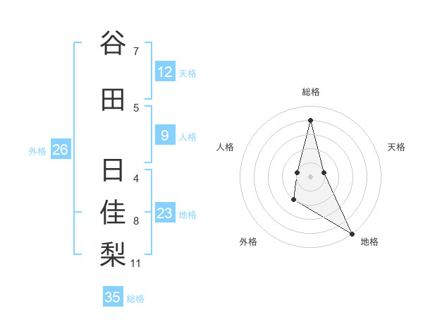 谷田 日佳梨さんの総格は35画の4点!